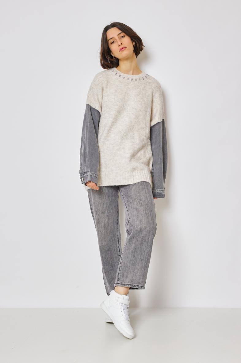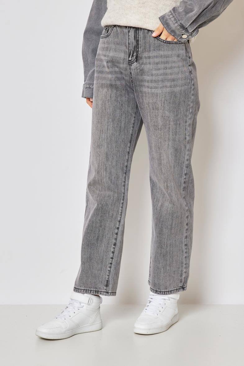 Acesti jeansi de culoare gri sunt o piesa clasica si versatila, perfecta pentru a crea tinute cool si confortabile. Cu o croiala lejera, de tip relaxed fit si talie inalta, acestia imbina stilul modern cu un vibe retro subtil. Denimul gri spalacit are o textura usor uzata, care adauga un aer urban si nonconformist, fiind ideal pentru un look casual, dar cu personalitate. Lungimea usor cropped, care se opreste deasupra gleznei, iti pune in evidenta incaltamintea- fie ca alegi o pereche de sneakersi albi, sau niste botine elegante. Detaliile clasice, cum ar fi buzunarele si cusaturile contrastate, completeaza disignul, facandu-i extrem de usor de asortat cu orice, de la tricou simplu, la un pulover fluffy. Acesti jeansi sunt alegerea perfecta pentru o zi in care vrei sa arati bine fara sa depui prea mult efort.