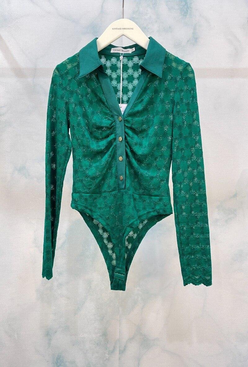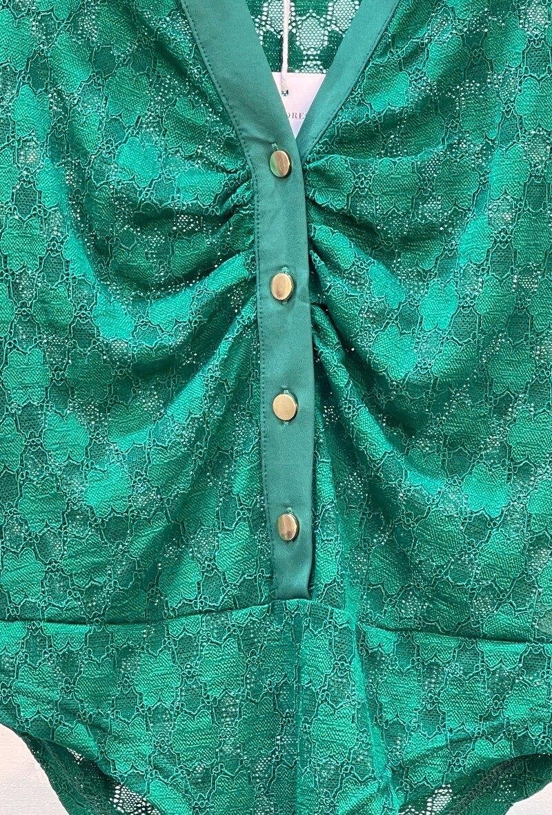 Body-ul pentru dama in stil vintage, de culoare verde, este o alegere eleganta si sofisticata. Acesta prezinta un design delicat, accentuat de dantela fina, care adauga o nota de feminitate. Materialul moale si confortabil se contopeste perfect cu silueta, evidentiind formele intr-un mod subtil. Ideal pentru ocazii speciale sau pentru a adauga o nota de rafinament tinutelor de zi cu zi.