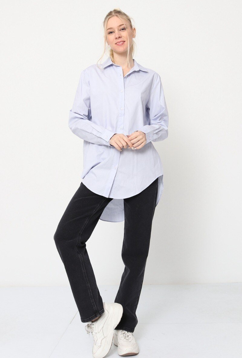 Camasa dama bleu lunga cu nasturi