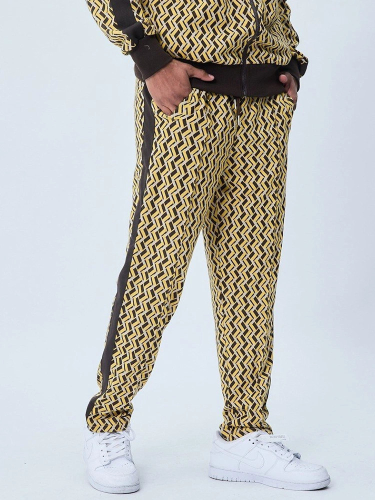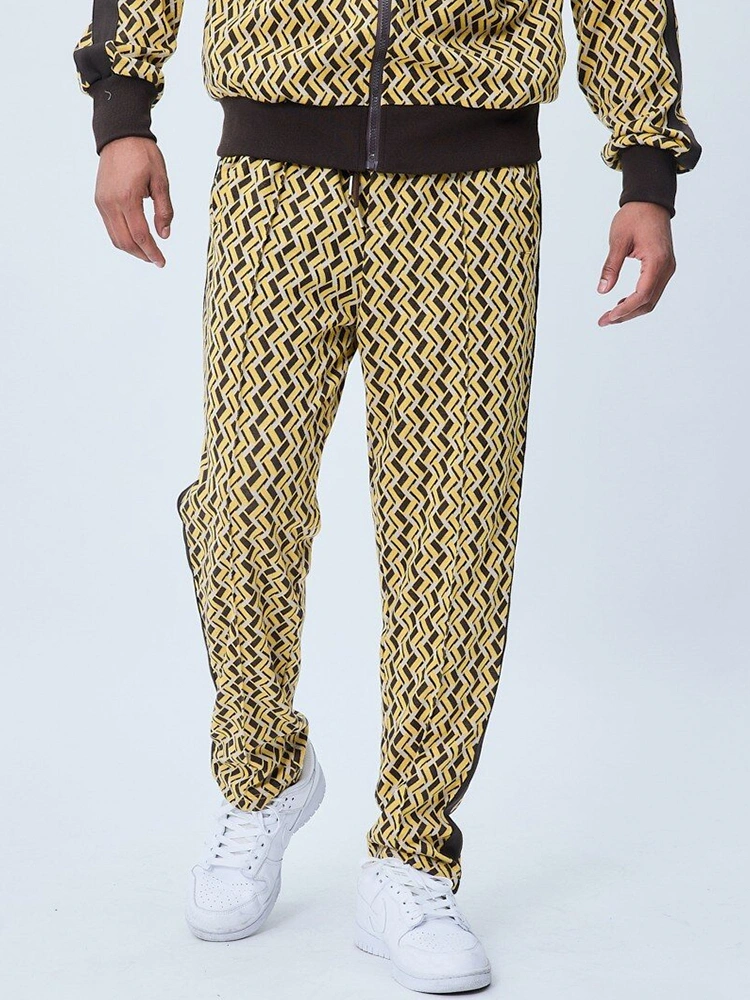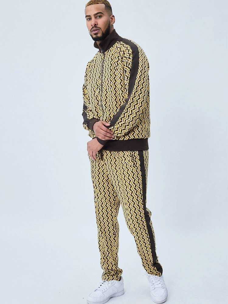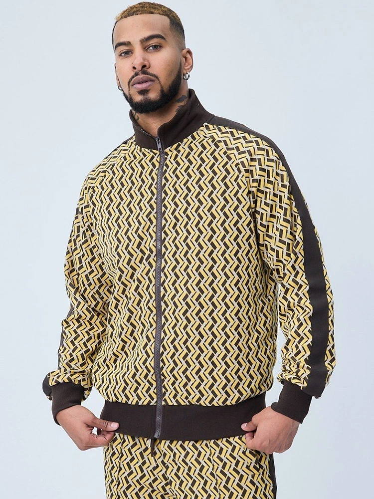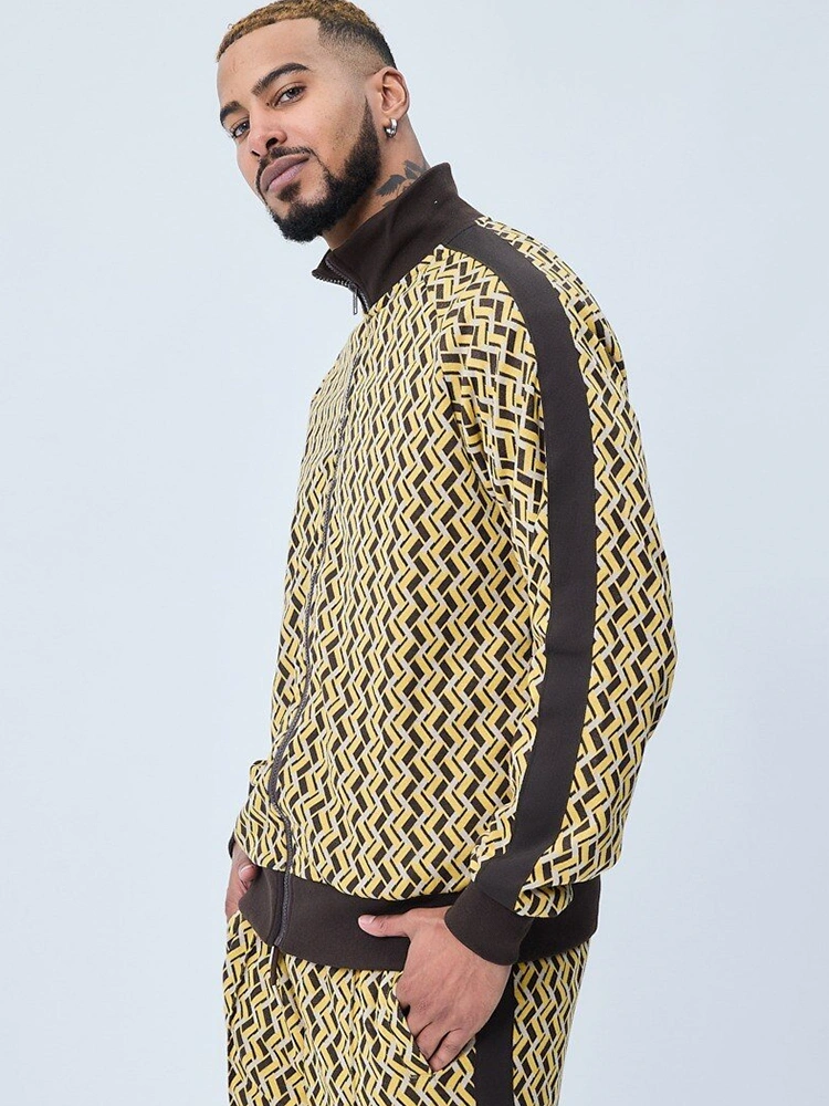 Compleu bărbați Frilivin Graphic Imprime, în nuanțe maro-galben. Realizat din 99% polyester și 1% elastan, parte din colecția Toamnă-Iarnă 2023/2024.