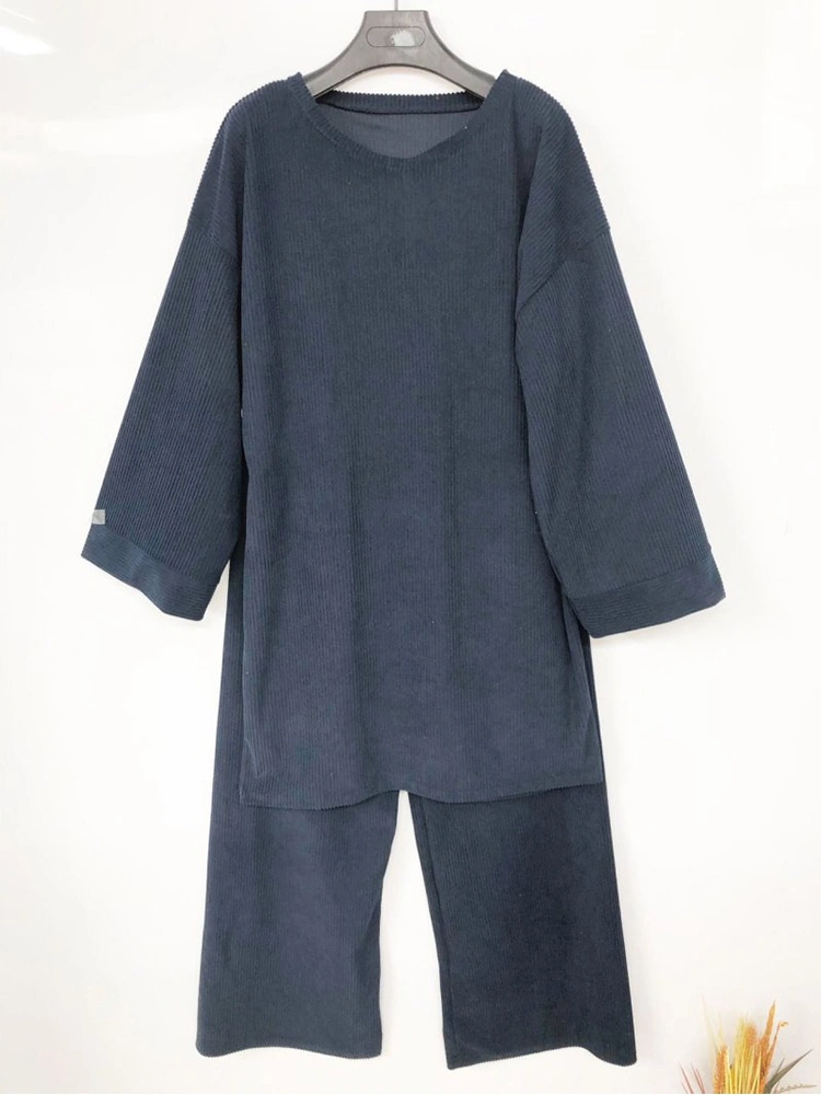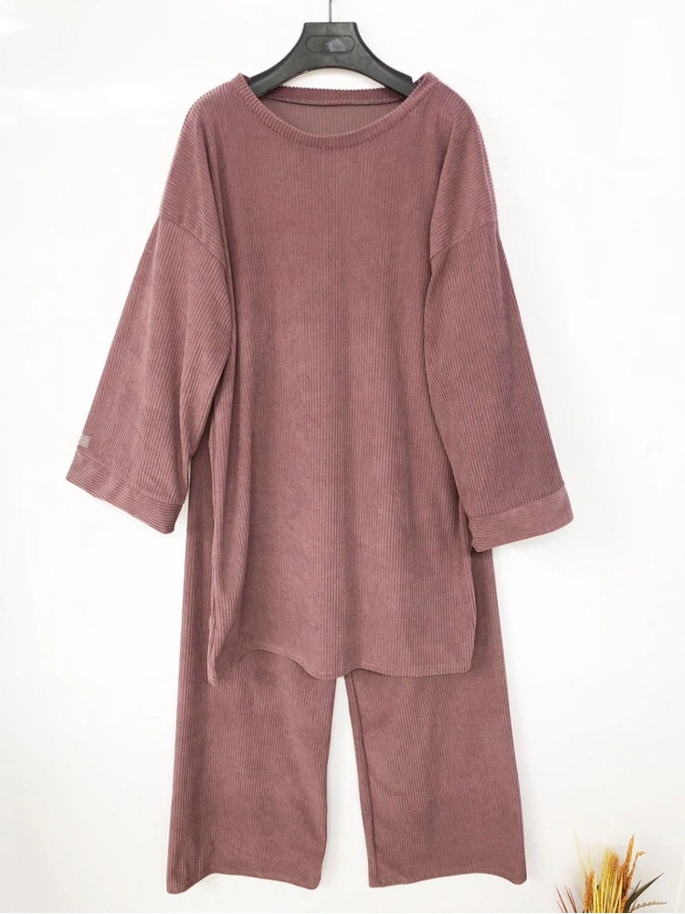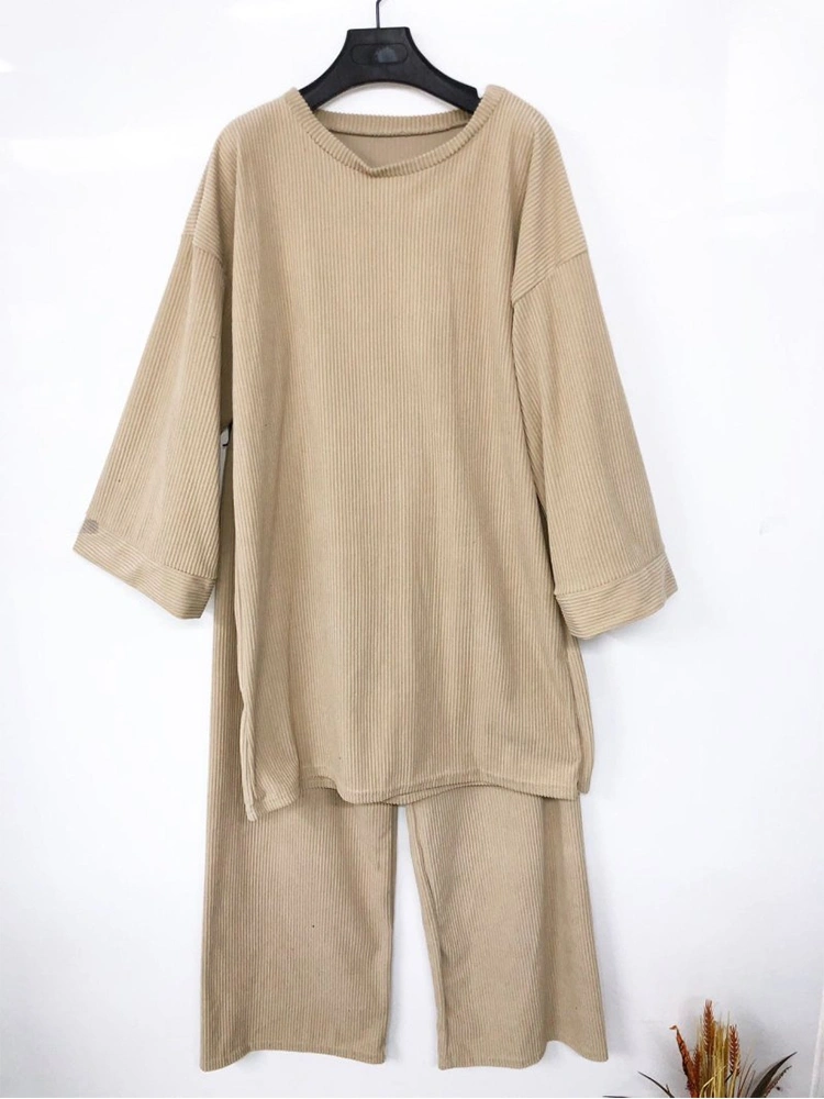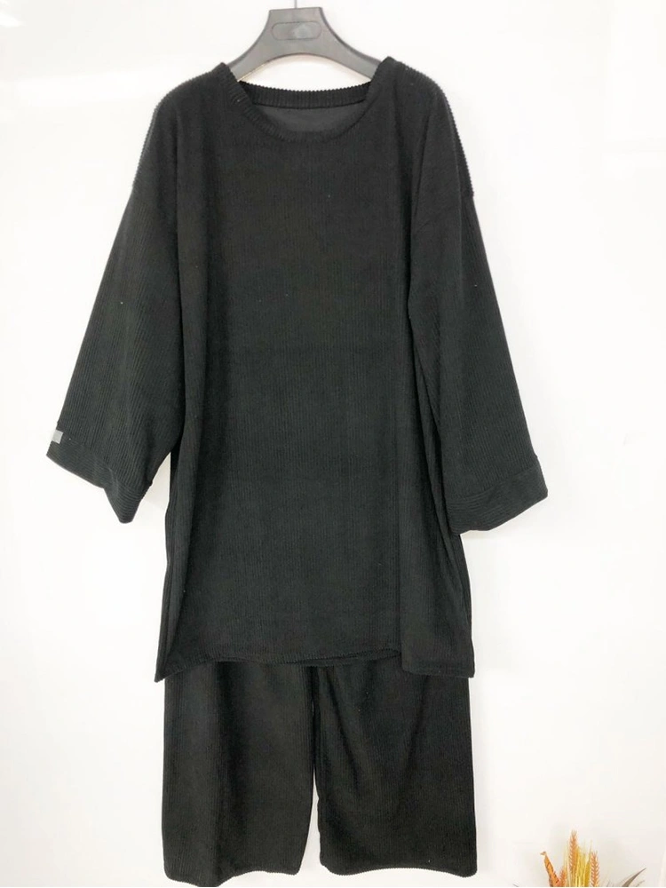 - Design oversize – tunică de 90 cm și pantaloni de 102 cm, perfecte pentru un look modern și relaxat.